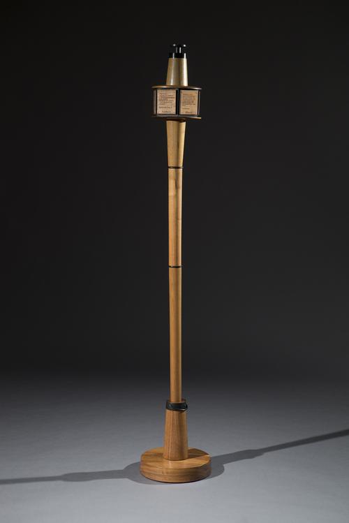 Designed in 1968 by NIU Art Professor Bill Haendel, the NIU presidential mace was first used at the inauguration of the late President Rhoten Smith. The graceful walnut staff originally featured a four-sided head engraved with quotations from ancient philosophers, writers and founding fathers. In an effort to bring new life to the mace tradition, President Freeman asked students, faculty, staff and alumni to suggest quotations that resonate more meaningfully with today’s university community. School of Art Professor James Obermeier and his students reconstructed the mace to include six sides, each bearing a quotation about the university life and the role of education in a free society.