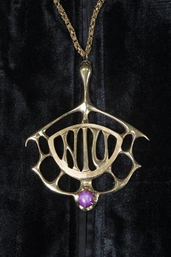 The presidential medallion is bestowed upon the university’s chief executive during the investiture ceremony. It is then worn by the president at commencements and other important academic functions. The NIU medallion was designed in 1968 for the inauguration of the late President Rhoten Smith, and its modernistic appearance strongly reflects the prevailing design aesthetic of the period. The six-ounce, 5 1/2-inch medallion which features the initials of the university was created by the late NIU Art Professor Eleanor Caldwell.
